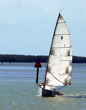 I suppose we should have a shot of the first place boat! Anyway, this is Lumpy and Bumpy on their Tornado cat, leaving the Key Largo finish line, sailing to a launching ramp to get picked up. |