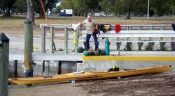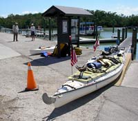 Stripbuilder and his lovely kayak at the Flamingo ramp. Note he has foam cushions under it to protect that stunning finish. |