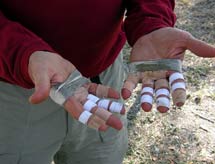 Your hands can take a beating paddling an EC. I'm not sure if some of these were preventative or all were to treat sore spots and blisters. I think this was Trader. |