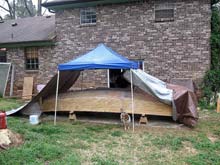 But such heady progress was not to last as mother nature had her way and I lost 5 or more weekends and numerous days to rain. In hindsight, a $200 or $300 instant garage/shelter would have been very worthwhile. Sean was able to come home from college a couple of times and help, but Paul’s new job had him traveling around Europe and the USA. So this was essentially a 95% solo build.