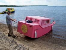 John Goeser and THINK PINK - a Steve Lewis-designed Chugger. |