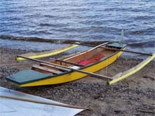 Designer Steve Lewis brought his Scout Canu with outriggers and a sail. |