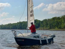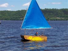 Kenny owns PDR #2. He let me sail this famous craft, and I managed to flip it over. (Don’t ask.) Back on shore I discovered I lost my wallet while in the water. The wallet was in a watertight polyethelene enclosure (i.e. a Ziplock sandwich bag), so I searched the shoreline hoping that it floated in. After two days I abandoned the search. A week later the wallet turned up in my mailbox. An honest fisherman casting from the shore found it four miles downstream from where I lost it, and mailed it back to me.