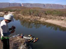 It is a day's drive from our place to Big Bend so Skip arrived the afternoon before with his spanking new foam cored, kevlar and fiberglass canoe. The next morning we drove to the Rio Grande. |