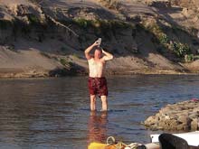 Temperatures ran as high at 95 degrees F during the say so it is not strange that John sought a cool bath as soon as we made camp. He did this most afternoons, putting most of the rest of us dirty birds to shame. |