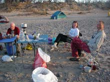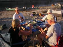 Time to eat! Louis, John, Dana and Linda had organized into a food group and they cooked and ate together. They really put on the dog too! It is amazing that they can carry all that gear and food in their boats. |