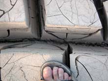Another after dinner walk revealed some of the biggest mud cracks I have ever seen - over a foot deep! Another legacy of the recent floods. Don't look at my foot - I warned you that some of us were getting dirty. |