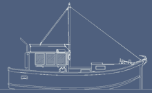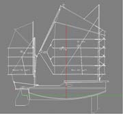 The current design is a cross between long micro and a chinese junk. I found a picture on the Cheap Pages of a junk hull that showed a large sliding rudder balancing a large dagger board which was fitted just ahead the mast. |