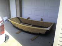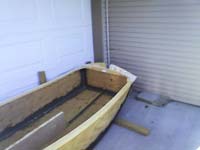 The boat was together and the inside joints done in a day. I turned it over and started on the bottom and outside joints using the same material as inside.
