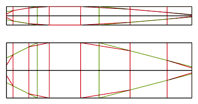 If the board has a varying plan form, the method still works, but the layout becomes a bit more complex. For example, for a board that tapers from 12 inches at the upper end to 9 inches at the (lower) tip, mark the offsets using a chord of 12 inches at the upper end and the offsets for 9 inches at the lower end, and connect the marks by drawing a straight line on the faces. If there is a distinct break point somewhere in the plan form, add additional layout marks based on the chord width at the break points.