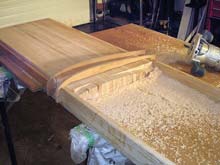 My jig “profiles” were made out of 12mm plywood which formed a stable enough platform. To hold the jig profiles upright and square I screwed them to longer pieces of scrap lumber that lined up with the centerboard “block” opening – these pieces then served as a bit of a guide as I moved the block through. The jig is screwed to the supporting piece of plywood, so the foil block slides through underneath, but I think as an alternative, you could slide the entire jig over a stationary block. I also found that the weight of the block generally held it in place, so even where the centerboard tapers somewhat, it did not move around. Lastly, I used a 1/2" straight cutting bit -- I think a wider bit would not have given good results for the nose, but I didn't do any experimenting.