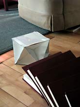 Incidentally you can make the entire assembly out of 24 individual triangles (especially if you insist on using heavy material), but you then have to come up with a joining technique for all the edges—my method saves you about 16 joints.