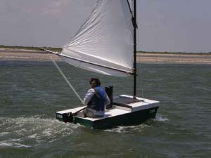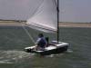 The 16' micro cruiser catamaran 'Miss Cindy' completes the last