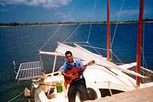 the only boat at the quay. A big sloop 'Saudade'. He suggest to