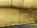 The Canoe was not pitched as it would run-off during shipment to Peace River. The pitch that was used on the canoe was a mixture of spruce gum and bear fat. The mixture of the bear fat keeps the spruce gum flexible so it does not dry brittle and crack off the canoe.