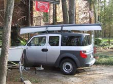 Paint still a little tacky weather has turned cool and damp again. Moved boat out into sun. Start checking out other gear, tent hasn’t been set up since the Ruta Maya five years ago. Screw in hatches and cut some lines for tiedowns. Start fabricating foot rest, cut out and glue pieces together. Revarnish paddle shafts, single and double.