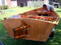 We had the centerboard and rudder made, but not shaped. So the rounding and tapering of those finds had to be done, as well as fiberglassing and then varnishing both.