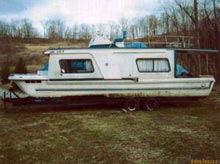 Our plan was to start on the hull. After doing research on hull designs we found an old production boat manufacture (Yukon Delta). The hull design was just what we were looking for and just happened to find one on Ebay. This would save two to three months of construction time. A call and 1,800 miles later we had our hull. What a wreck!