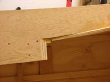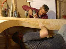 I would make a curve with pencil and batten, look at it then try another. I tried to make it uniform enough so I could bend ¼” plywood evenly to it. Once satisfied with it I grabbed the jigsaw and started cutting before I could change my mind. I placed a scrap of ¼” ply against the curve and was satisfied that it would work. With some prep work I reinforced the underside edge with a layer of 3/8” ply. |