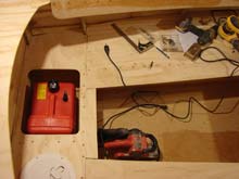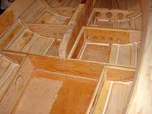 Done. I finally had those panels that were hanging around my shop out of the way. No party this time, summer is fast approaching and there’s much to do. My father was in town for a visit and not being an idol sort, he came down to give me a hand at the boat. I located all the hardware points and glued reinforcing blocks underneath. |