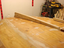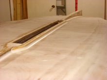 Once sanded flush I laid down my 2 layers of biaxial tape over the seam. I overlapped them and staggered them so not to make too big a hump. |