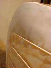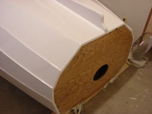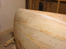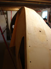I gave it a rough sanding after, so the glass cloth would stick better and flatter. The 6 oz cloth practically fell into place with virtually no wrinkle so a cut wasn’t needed nearer to the front. |