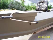 The “Cow Chain” produces absolutely amazing results. The boat seems to be on automatic pilot. The dragging “Cow Chain” restrains River Runner’s forward movement. The river current passes under the sloped stern. The forward motion of the current is not blocked by a standard style outboard transom. The river current also passes along the sides of the boat and causes the bow to point downstream and follow the main current.