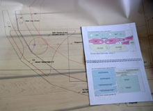 In April 2008, my Seil-18 plans were delivered by the mailman. By then, I had already shaped the mast and gaff to the detail drawings that naval architect François Vivier had sent me in advance (as I was eager to start) while he was still completing his updated drawings. The package contained a roll with three 1:1 drawing sheets and an envelop with a booklet containing building instructions, a manual with boat building techniques and a 1:10 drawing of the entire hull. The full-size patterns on polyester sheets are wonderful to work with. No lofting is required. It's really hard to make any mistake at all (though I managed to do so while marking minute plank notches on a station).