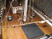 The walkway giving access to the spare binnacle on roof of aft deckhouse