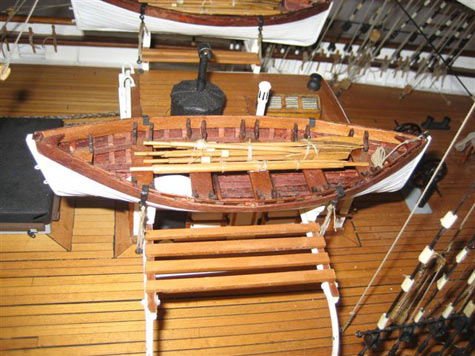 The ships boats on the skids amidships with all their gear stowed neatly inside. Each boat floats and is really a model in its own right.
