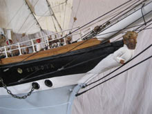 I’d like to add that each of the Sindia’s four lifeboats are built exactly like the original, clinker planked, internally each one fitted with stringers, frames, thwarts, hooks, knees and spreaders, each boat with six hand-shaped oars, one slightly longer steering oars, rudder and separate tiller, mast, rope and a wooden bailer - and they float and sail The photograph shows the detail.