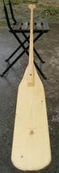 I also made a double paddle out of the spruce. I drew out the blades 4” wide x 12” long, and the shafts a little over 1” wide and 3’ long, choosing the boards to avoid any bad knots , and then ripped 1” wide boards a little over six feet long out of the spruce. I scarfed the two blade/shaft pieces together (probably overkill, but it just took a minute), measuring so that my two other boards would overlap and reinforce the blades by about 6 inches, and then laminated the three pieces together. A copper rivet at each end of the shaft, some epoxy to seal the endgrain, and three coats of varnish completed the deal. It is surprisingly light and flexible, but the laminations really give it strength, and compared to a couple of other 6-mm ply blades I have broken, the blades are very strong too.