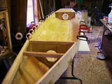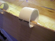 I decided to use Epoxy during the construction, with the “cure” time of epoxy being a lot longer than glue I needed more clamps.  I cut some 2 ½ inch PVC pipe into short pieces. These make good clamps for clamping thin wood that doesn’t need a lot of pressure.