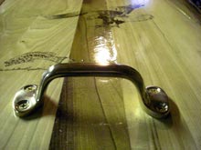 Adding a half pound brass handle to a Kayak isn’t too logical when trying to keep the weight down but it sure does look good. The handle is solid brass and doesn’t hurt your hand like the “stamped” metal ones. This one came from Duckworks and I was glad I ordered it.  (It may not be that heavy…)