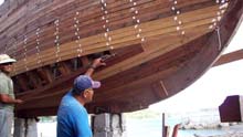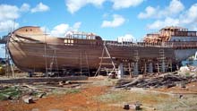 This boat is 33.33 metres long made from 9 different kinds of tropical hardwood including machich, pucte, dzalam, cuero, corazon azul and four others that I don't remember.