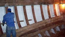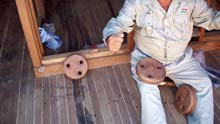The keel beam measures about 11" x 16" (28cm x 40cm) and the big knee is at the transome and is 11" wide by about 3'x3' (28cm x 1m x 1m). |