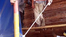 The boat has small amas close to the hull. If you look closely at this photo and the next one, you will pick them out. |