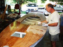 Finishing of a boat has always been a task for me. Sand, recoat, sand again etc. And what paint to use? I have tried exterior enamel, exterior porch and floor and polyurethane, none of which satisfied my long term requirements. I know, what about Marine Paint? One word, expensive! Most recently I have been using Marine Spar Varnish, and although somewhat expensive, I like the end result. It seals the wood and provides a natural wood finish that makes any boat look better, and it's a good way to show off your craftsmanship.