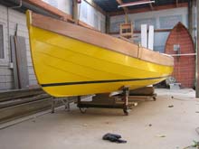 Sea Nymph is back upright. Angela wanted a yellow boat she will be easy to spot from miles away .shaft and prop are in flat areas on stern are for rudder gudgeons.