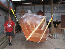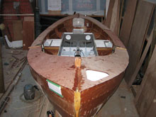 Hi Chuck here are some more pictures of Sea Nymph with all her lockers painted. The decks are on and rolling her over single handed to finish exterior.