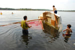 We decided to take some time from designing and get our Mushulu 14 finished and on the water. The morning of launched day was hectic to say the least. With the boat trailer hooked up, some last quick photos and my calculations notebook in hand, we were off.