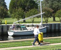 drawbridge just to the south. I was able to get a few pictures of the Nonsuch 30 catboat as it locked through.