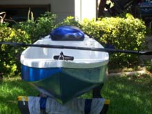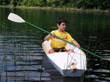 I thought you might like to see the boat I made for my grandson, the canvas covered one. I just made it up as I went along. No epoxy, no screws.