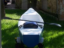 Overall this boat is heavier than a 4mm boat, but the price was right. Some of the things I observed that would be helpful to others, especially when my workmate builds his are these. (1) The 6.5mm ply is pretty stiff, so good stitching is a must. Not forcing things along seemed to help. (2) The side scarfs did not align directly across from each other, so the ridigity of the shaping process caused some problems in the transom area. the transom is slightly skewed when looked at from the bow. I was unable to get it to behave to achieve a more symetrical appearance. (3) Since I am a neophyte with epoxy, things got kinda' messy, excess product, a few runs, etc.