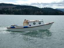 Some brief specs: loa = 18', lwl = 16', d = 6", wgt = ~ 600#, rough water displacement hull.