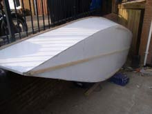 I have finished the inside and have rolled her over and started on the outside. Hopefully will prime Saturday. I am happy with my efforts thus far. Got my oars last week and am itching to get on the water but am attempting all the calls in my head to hurry. I ordered my oars from Van Fancy of Fancyoars-paddles.com Very nice man and he makes and has been making oars for a long time. Great prices too. Fast? well he is very fast. Makes oars as they are ordered appearently. I got one pair of spoons and one pair of straights for the price of a pair of S&T's.. I have put up new photos of my progress in the photo section. Whatcha think?