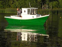 Epoxy was West Marine throughout. I made the sails from bolts of sailcloth, software and hardware purchased from Sailrite (and you guys) according to the techniques in Marino's book "The Sailmaker's Apprentice" - lofted and basted with 3M Super Seamstick, machine seamed and hand finished. She is a deep forefoot keel skipjack design and has no centerboard. Windward performance is good within 4 points of the wind on either tack, and gaff twist is controlled with a vang that can be cleated aft and controlled by the helmsman.