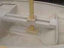 Down below is the mast step has a slot to slide the step forward