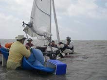 After all, it is two sheets of plywood that looks like a sandbox and sails with a tarpaulin sail. Their builders scrounge for parts, priding themselves on thrift and ingenuity, awarding their praise for creativity in build and use of materials for purposes never intended, probably never thought of before by their manufacturers.