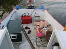weight further forward. Trim is touchy in a boat so short, and
